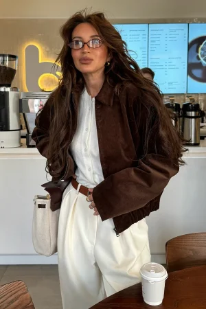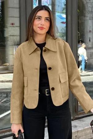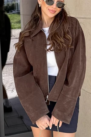 Autumn Fashion Brown Suede Coat Women’s Commuter Versatile Collar Jacket Top