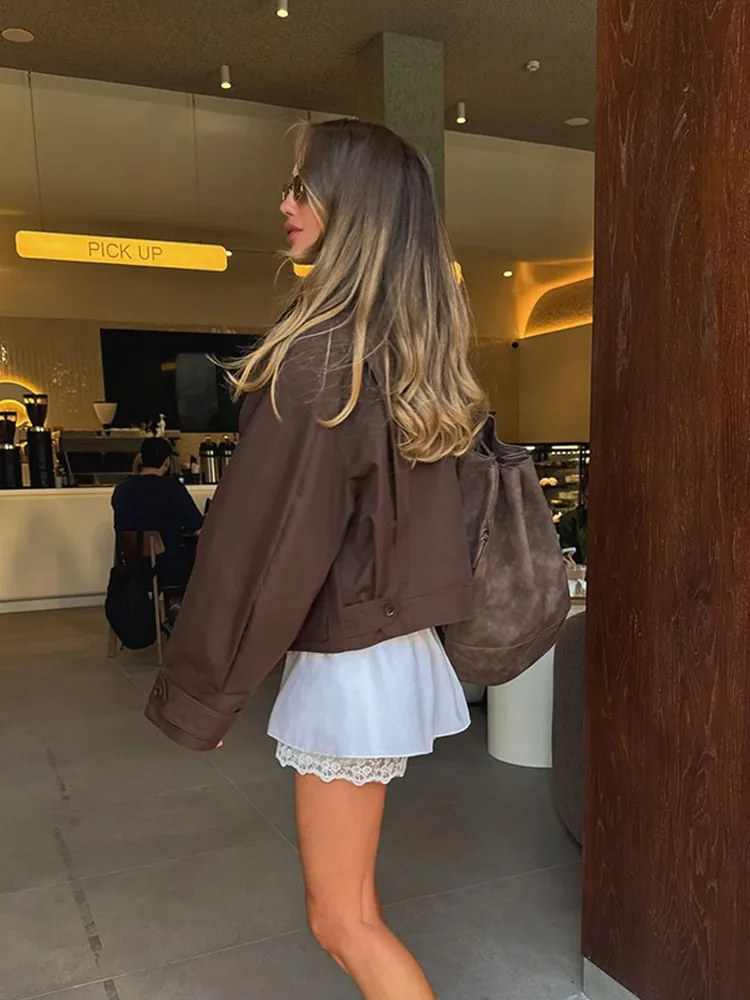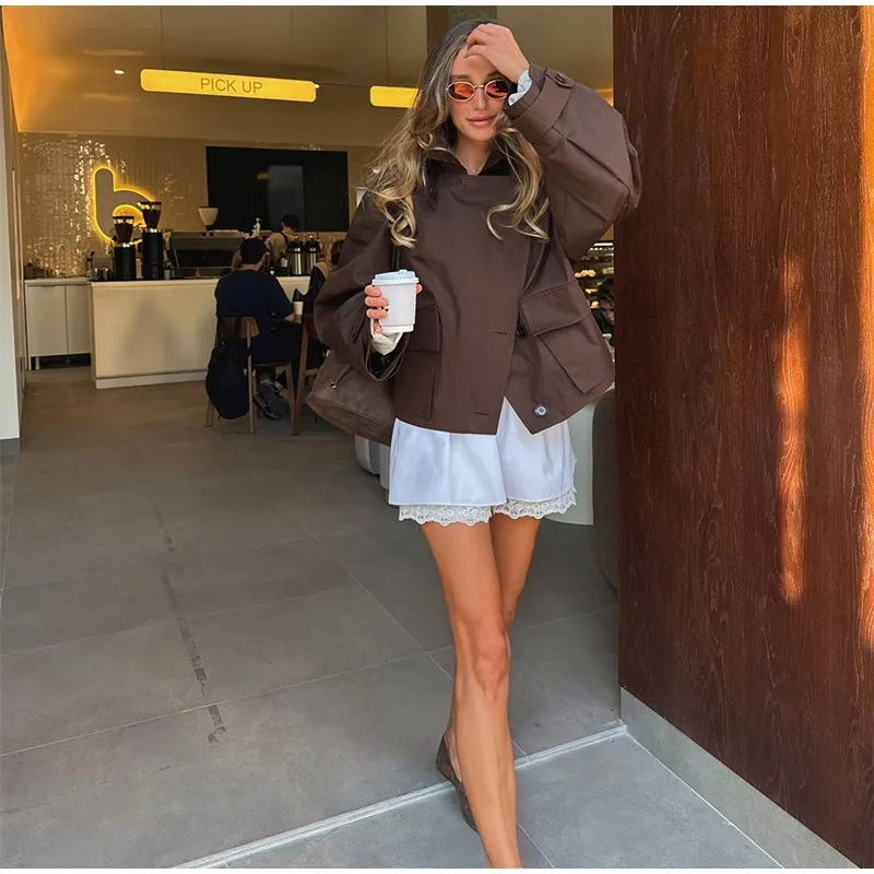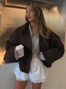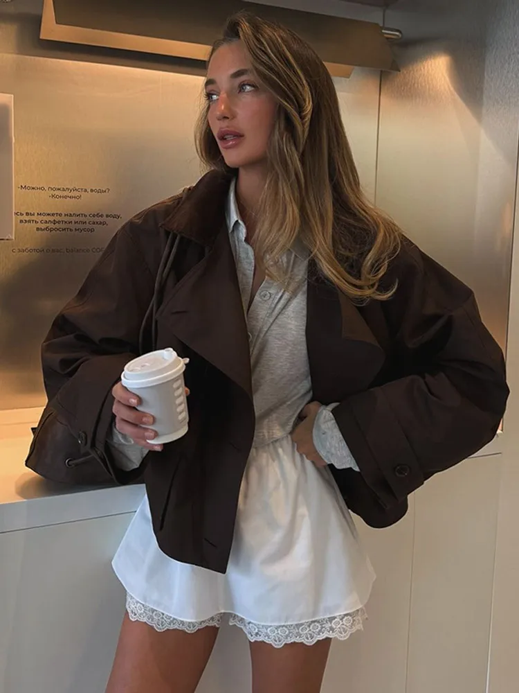 - Model Number: Retro Brown Lapel Short Jacket