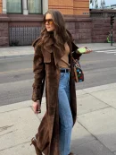 With a double-breasted closure and turn-down collar, it provides a classic yet modern look.